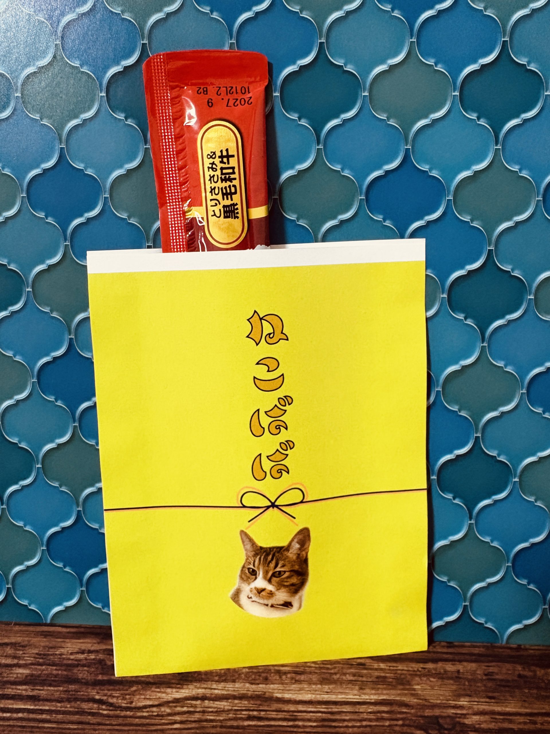 中身を確認すると、現金ではなく『ちゅ〜る とりささみ&黒毛和牛ミックス味(高級)』が一本。