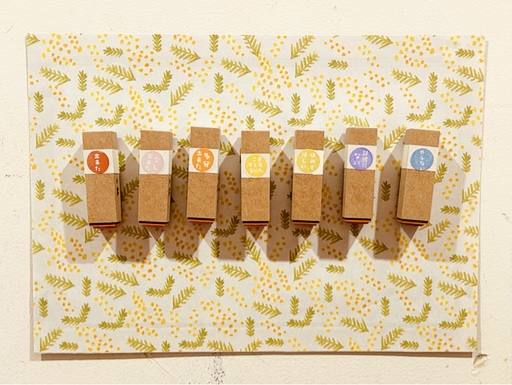 今回は丸シールを綺麗に見せるため、はんこに巻くマスキングテープは「白色」をおすすめします。