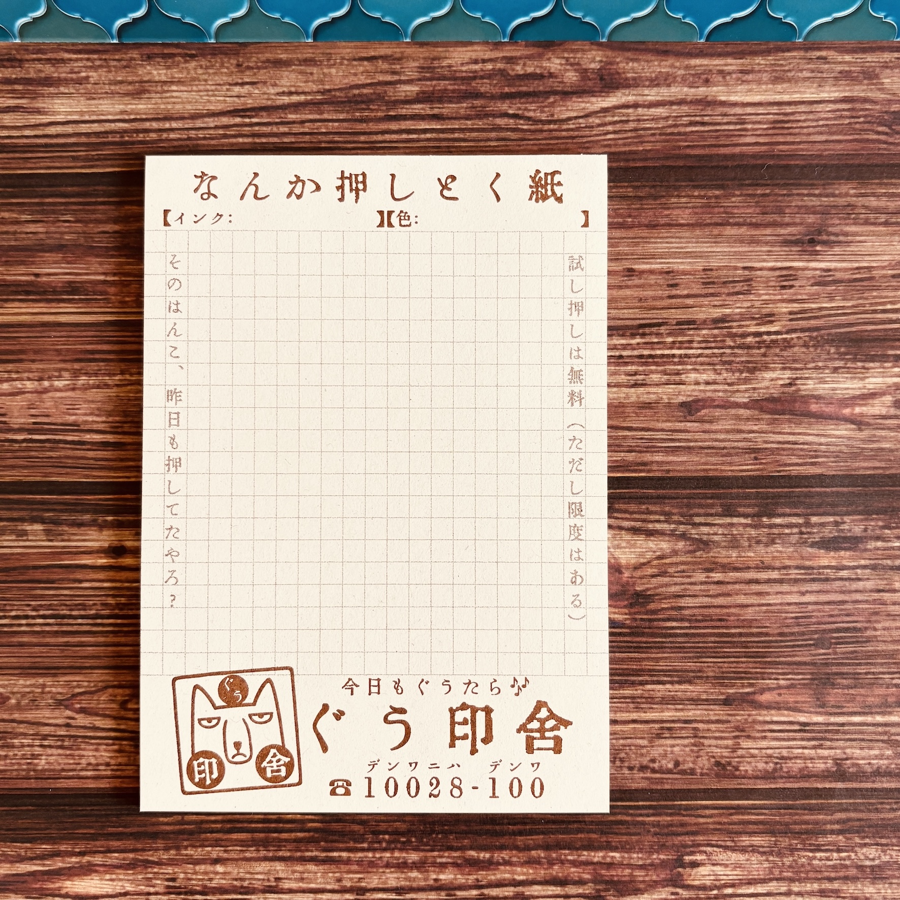 ぐう印舎の店頭に、店主が適当に置いていた「試し押しの紙」。